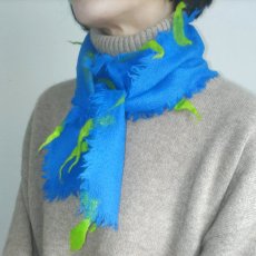 ウールやシルクを染色し独自加工したマフラーやストールなどのファッションアイテムを