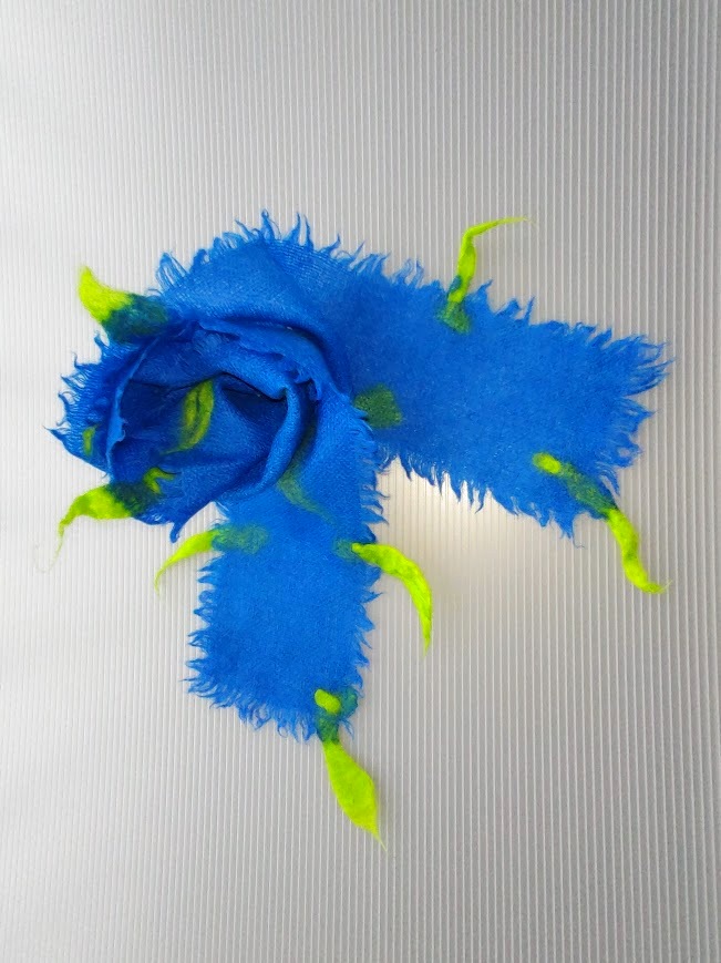 2枚重ねのウールガーゼの生地に粗く紡いだ原毛を羽のように挟み込みニードルパンチで仕上げました。
